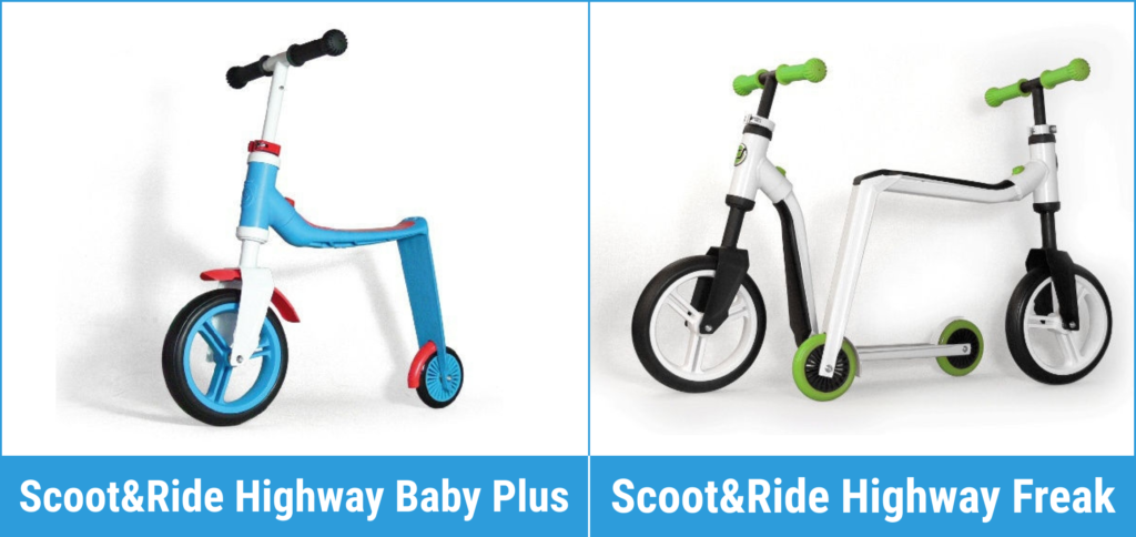 Беговел-трансформер под названием Scoot&Ride Highway Freak сочетает в себе функции еще и самоката и обладает красивым дизайном.