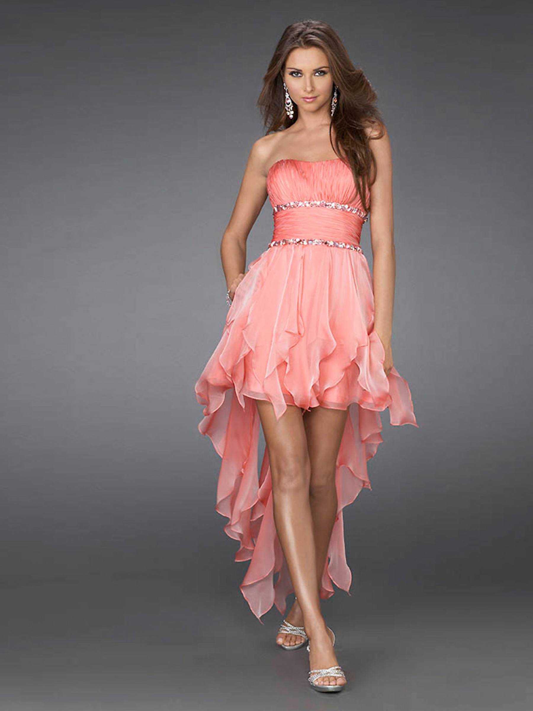 Великолепно выглядит платье со шлейфом в розовом цвете. При этом не стоит выбирать модели со слишком длинным шлейфом. Присмотритесь к платьям с асимметричной юбкой, которую легко прихватить рукой.