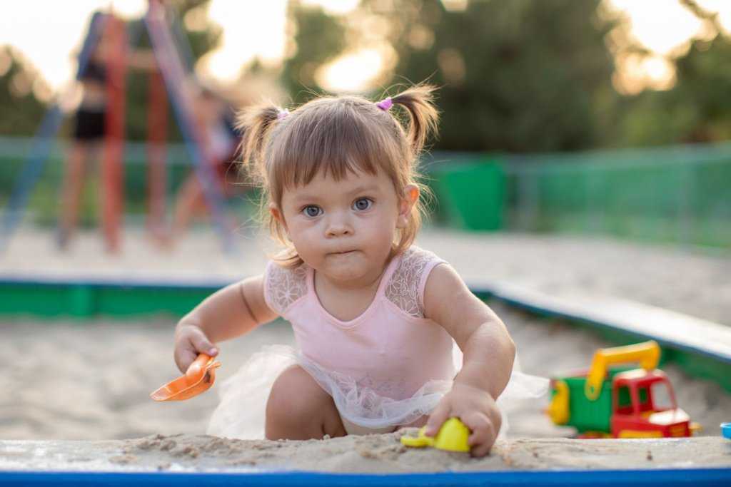 Разрешайте ребенку играть в песочнице, только убедившись, что там нет посторонних предметов (стекла, окурков, экскрементов животных и т. д.). Учите малыша не кидаться песком: это невежливо, а еще он может попасть в глаза. Если это произошло, не позволяйте ребенку тереть их и как можно быстрее промойте чистой водой.