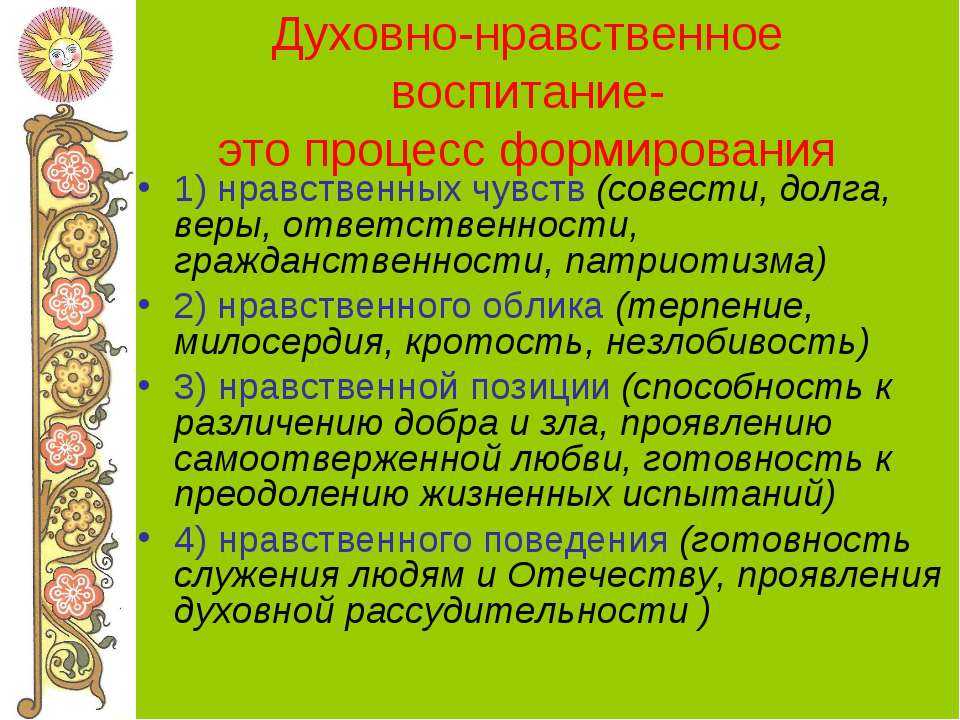 Задачи, формы и цели духовно-нравственного воспитания в семье