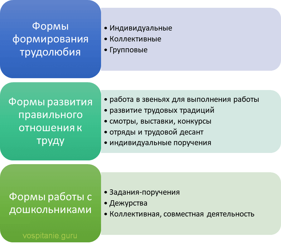 Все формы, направленные на формирование трудолюбия объединяются в несколько групп: