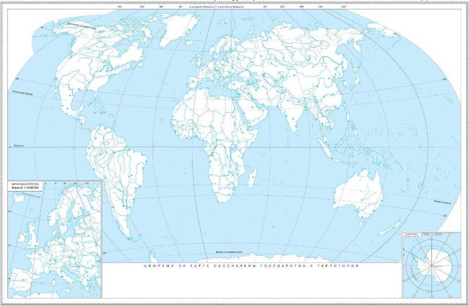 Контурная географическая карта мира открывается в новом окне на весь экран.