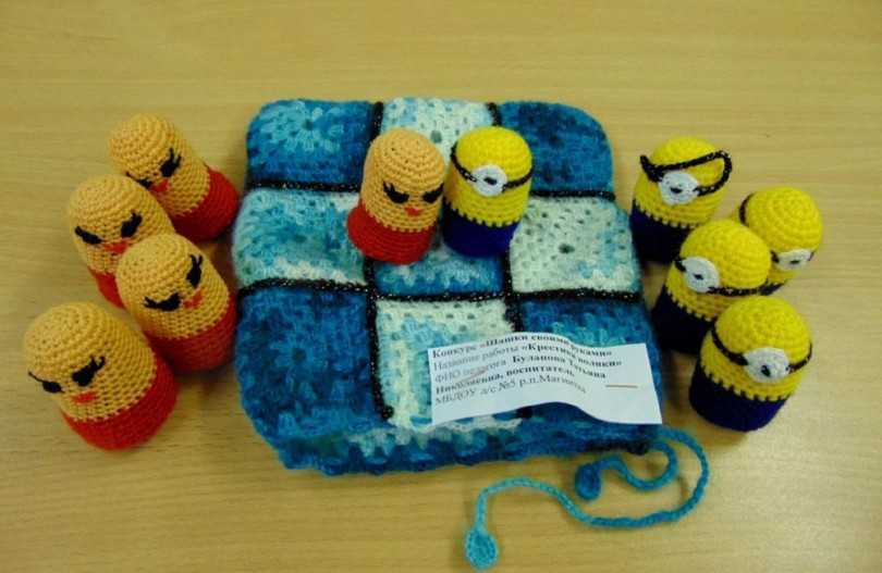Для поля подойдет картон, дерево, ткань, пластик, главное, чтобы было эстетично и вызывало желание поиграть. Красивое решение – диванная подушка с вышитой решеткой и кармашком на обратной стороне для хранения фетровых кружков двух цветов.
