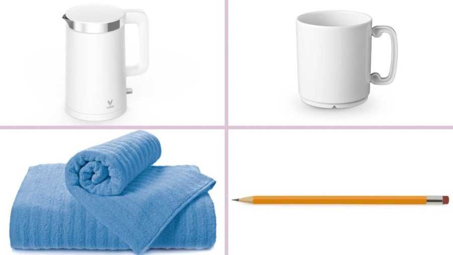 - электрочайник, кружка, полотенце, карандаш.
