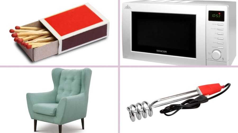 - спички, микроволновка, кресло, кипятильник;