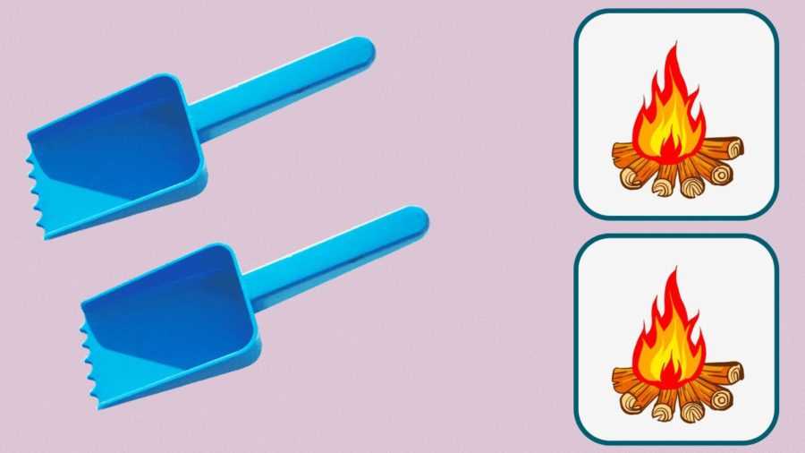 Для подвижной соревновательной игры нужно взять два игрушечных совка или две столовые ложки, распечатать на плотных листах два одинаковых изображения костра. Дети разбиваются на две команды, становятся с противоположных сторон песочницы. Задача — зачерпнуть песок из песочницы, донести до своей картинки костра, стараясь не рассыпать, и высыпать на изображение. Побеждает команда, насыпавшая большее количество песка на картинку за заданное время.