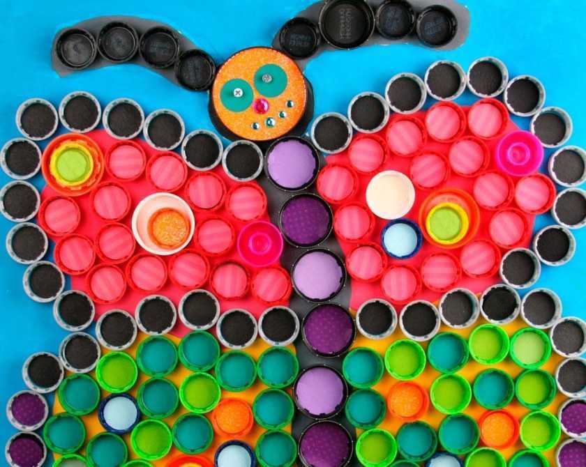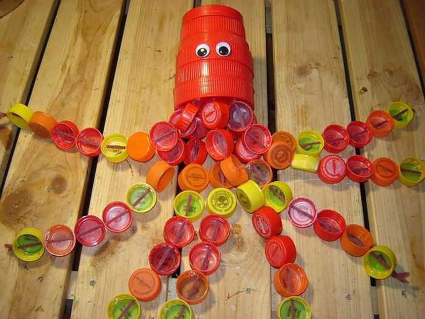 С помощью крышек можно сделать роботов, зверей, человечков, насекомых, фей, героев мультфильмов и сказок и ещё много различных существ. Такие фигурки из крышек не оставят ни одного ребёнка равнодушным.