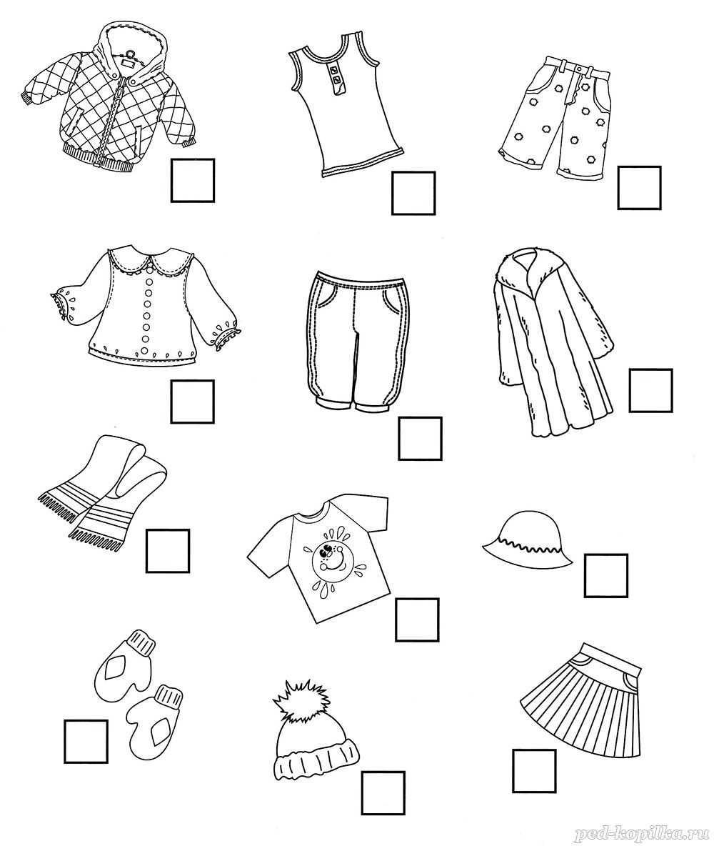 Какая одежда летняя, а какая – зимняя? Подпиши рядом с летней одеждой буквы Л, а с зимней – буквы З.