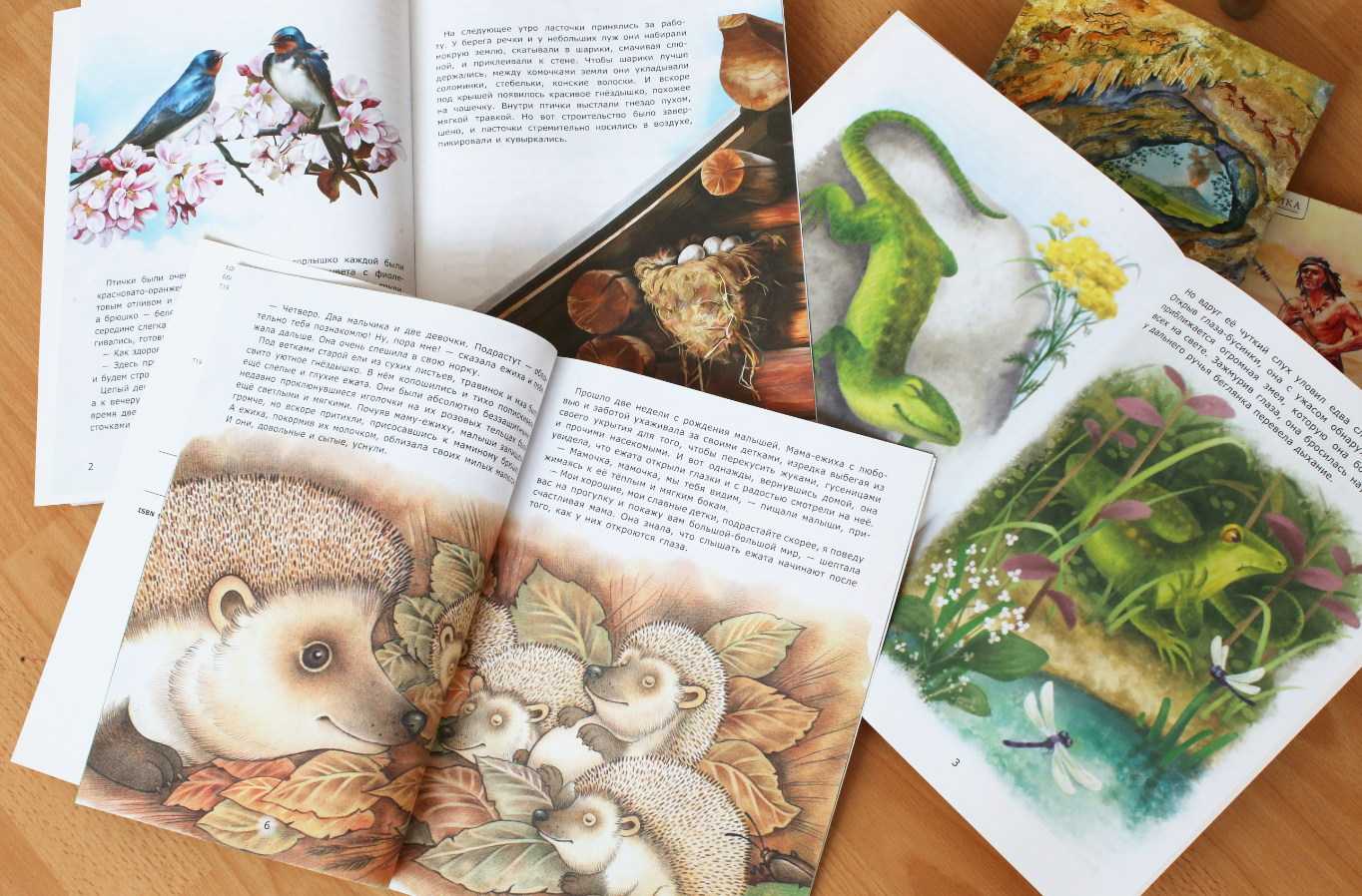 Приятные крупные иллюстрации известного художника Скобелева. Фон не изобилует мелкими деталями — ничто не отвлекает ребенка от нарисованных животных, а они изображены натуралистично, пропорционально — залюбуешься.