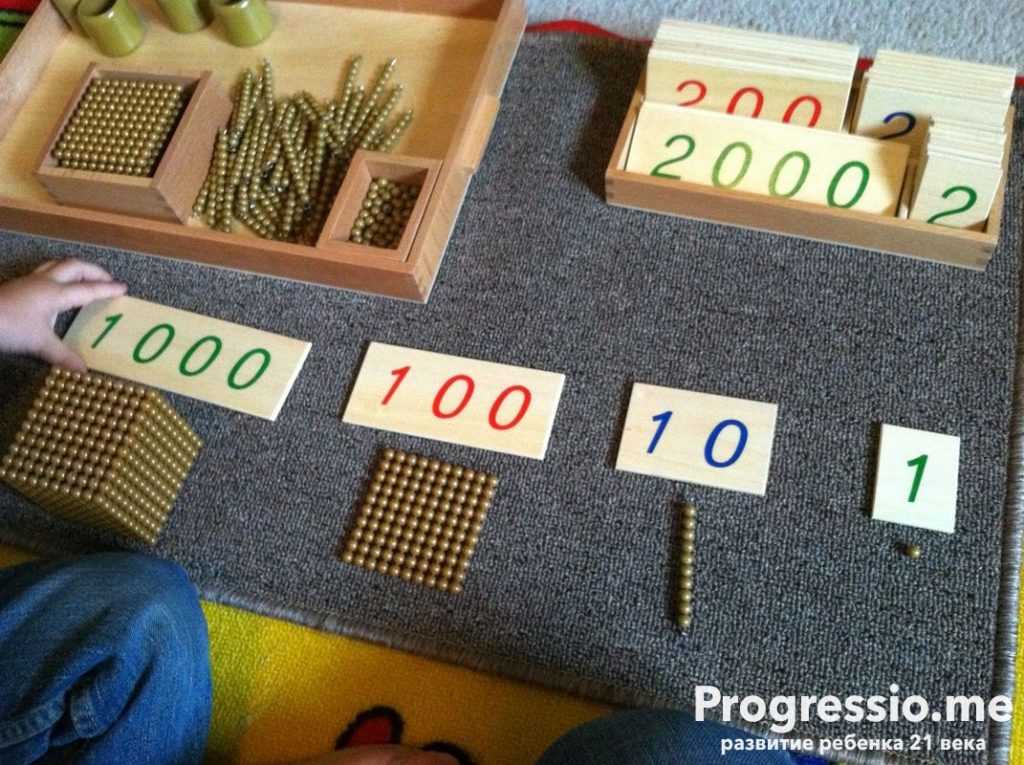 Для счёта до 100 — бусины, доски Сегана, цветные цепочки.