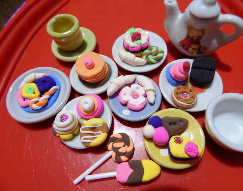 Поделки из лёгкого пластилина в виде конфет станет весьма любопытно выглядеть рядом с куклой.