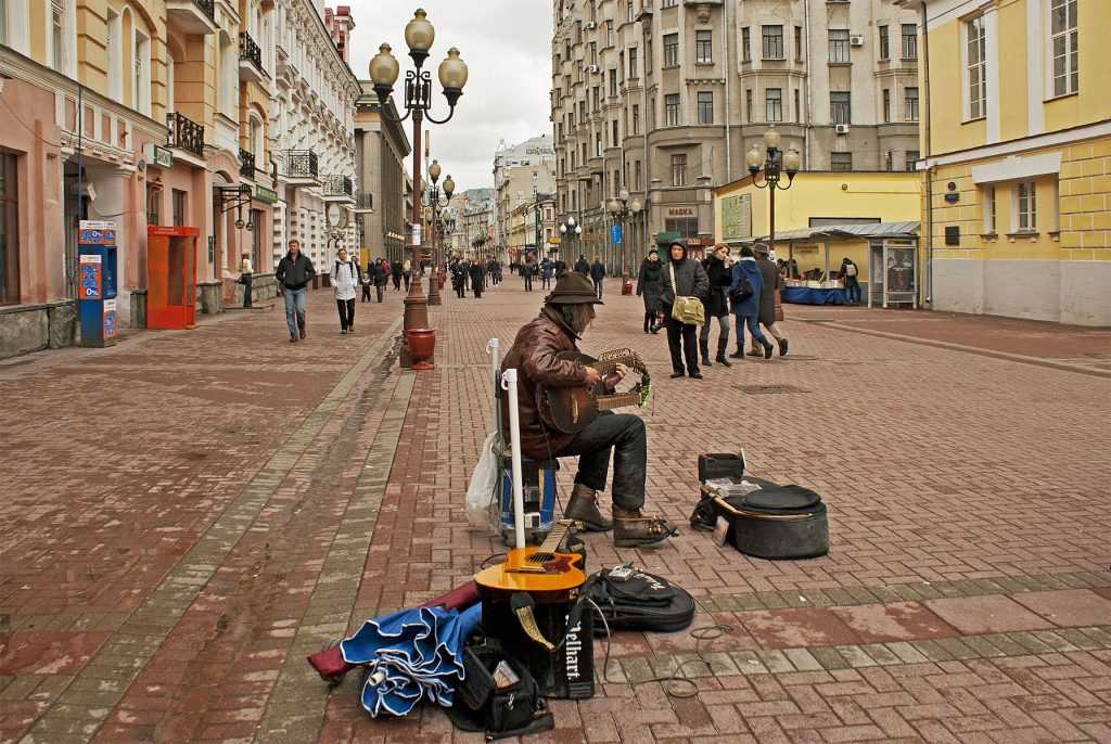 - Арбат – центральная городская улица. Именно она передает всю неповторимую атмосферу города. По ней гуляют люди, уличные музыканты играют на инструментах и поют, а художники представляют публике свою работу. Здесь когда-то жили и творили многие знаменитые люди нашей страны.