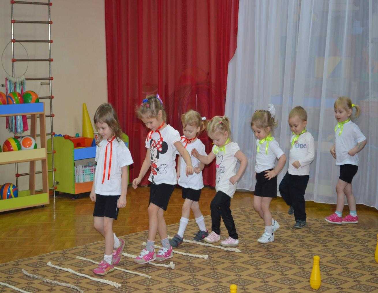 В групповой комнате дети выполняют упражнения по профилактике плоскостопия.