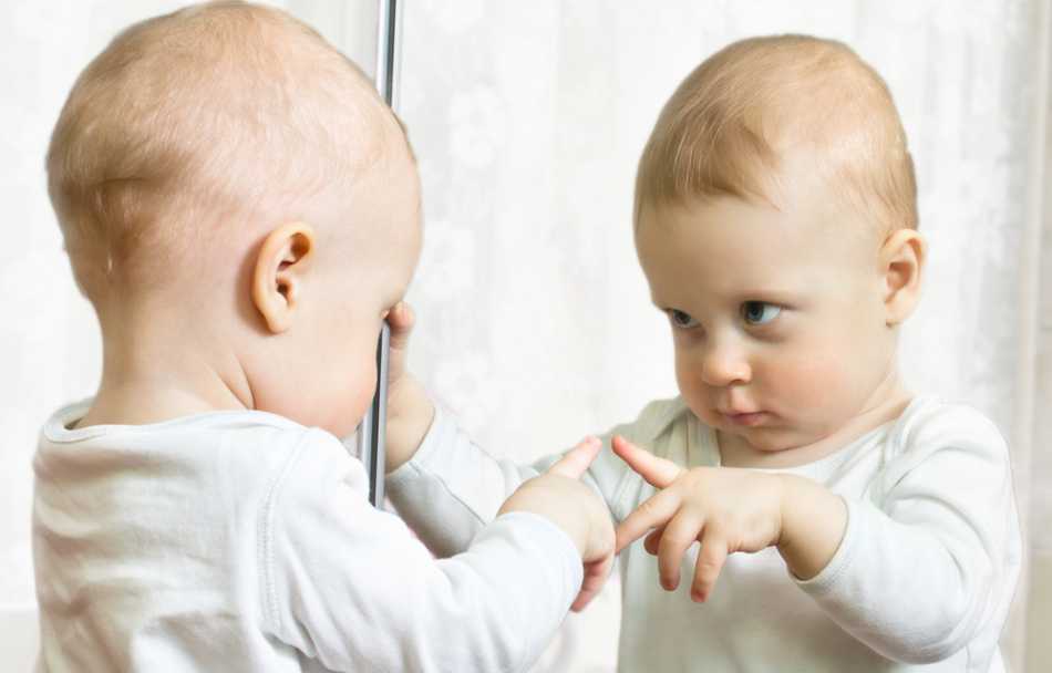Даже, если ребенка часто подносить к зеркалу, то до шести месяцев невозможно понять, узнает малыш в нем себя или просто реагирует на отражающиеся движения.