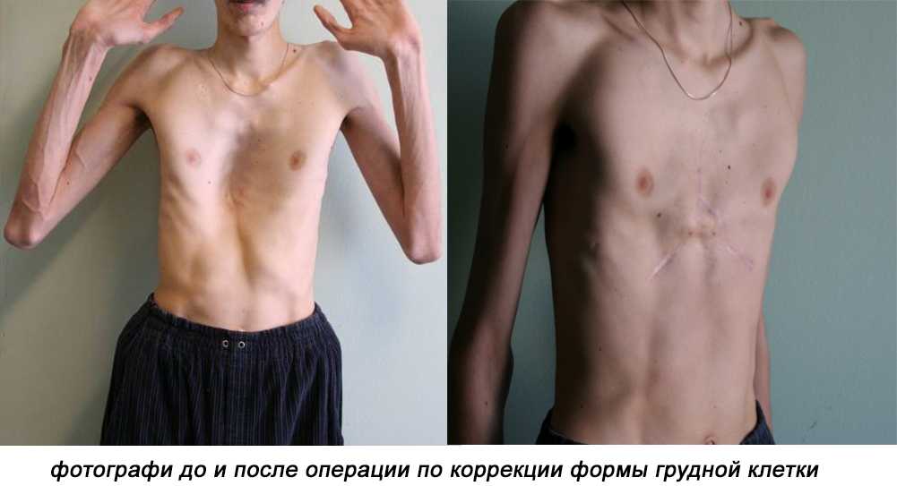 - Деформация грудной клетки — вогнутая грудная клетка.