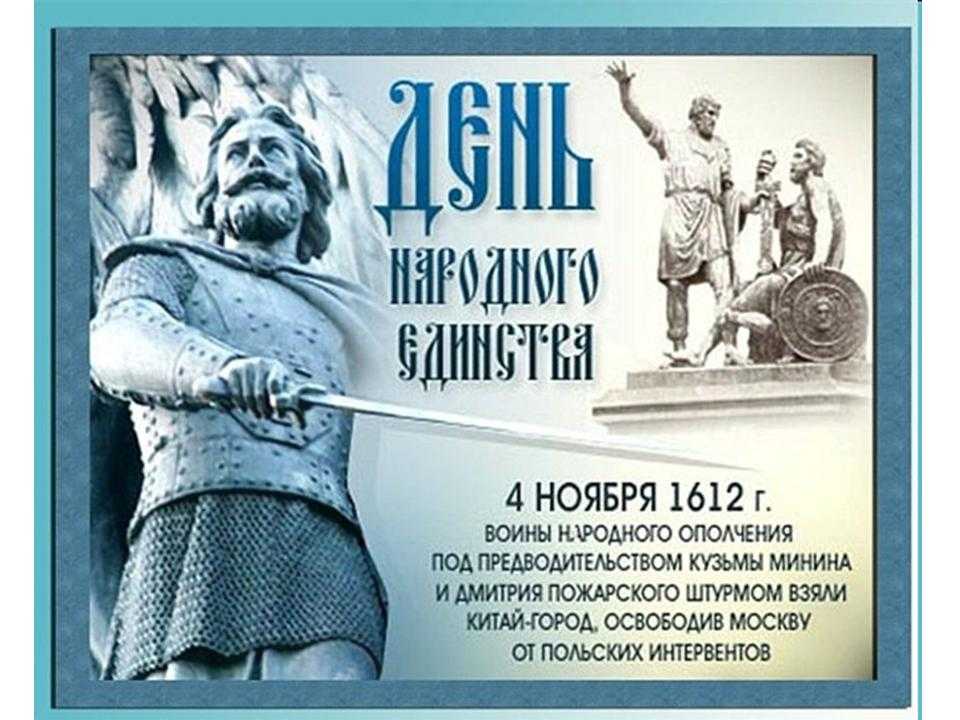 Многие россияне воспринимают ДНЕ как самый молодой праздник, хотя 4 ноября — историческая дата огромной значимости. После смерти Ивана Грозного страна погрузилась в политический хаос, из-за жадности и недальновидности бояр польско-литовские войска оккупировали Кремль. Русский народ оказался в полном бесправии перед иноземными захватчиками. Последней каплей, переполнившей чашу терпения людей, стала смерть патриарха Гермогена. Даже в тюремном заключении он призывал русский народ изгнать интервентов из Москвы. Минин и Пожарский смогли собрать под свои знамена людей самых разных сословий и 4 ноября 1612 года одержали сокрушительную победу над врагами.
