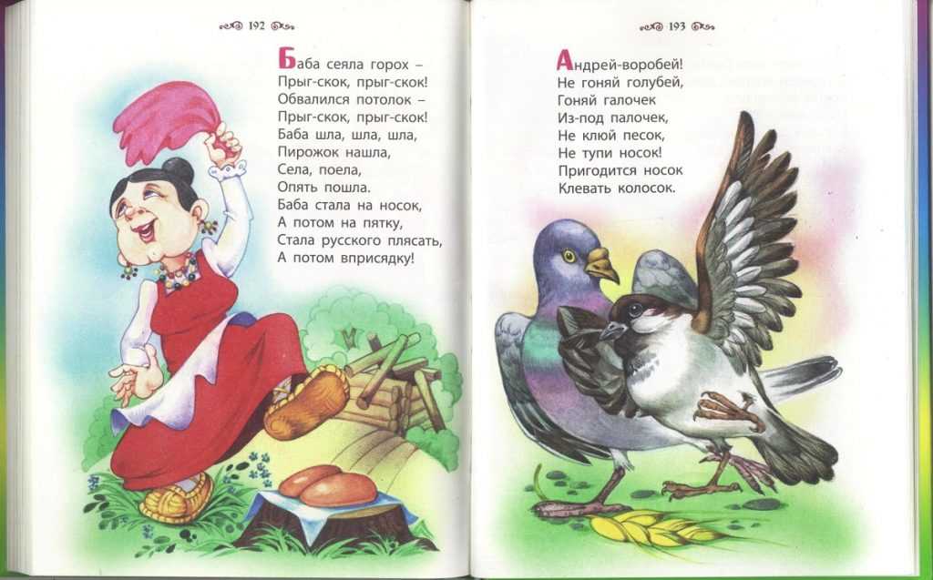 Жили-были дед да баба,Ели кашу с молоком.Рассердился дед на бабу —Хлоп по пузу кулаком!А из пуза — два арбузаПокатились кувырком.А из носа — два матросаПобежали босиком.