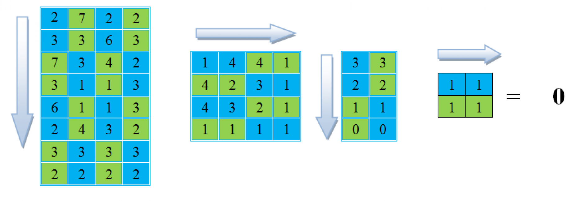 Ровно по центру схемы будут расположены 4 значения, разность между составными частями которых составит 3. Далее, вокруг данного блока будут размещены 8 ячеек, разница которых составит 2. А еще дальше – 16 с результатом «упрощения» равным 1.