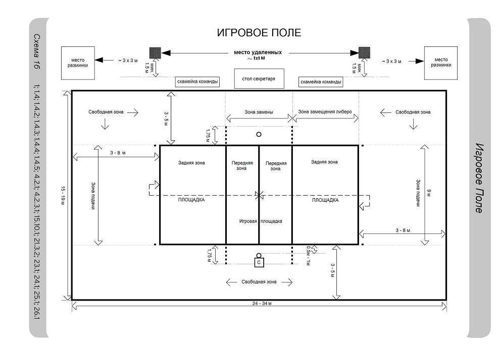 Часть площадки каждой команды разделена условно на 6 зон, в каждой из которых находится игрок. Четких границ между ними нет, но после каждой подачи игроки перемещаются в другую зону, двигаясь по часовой стрелке.
