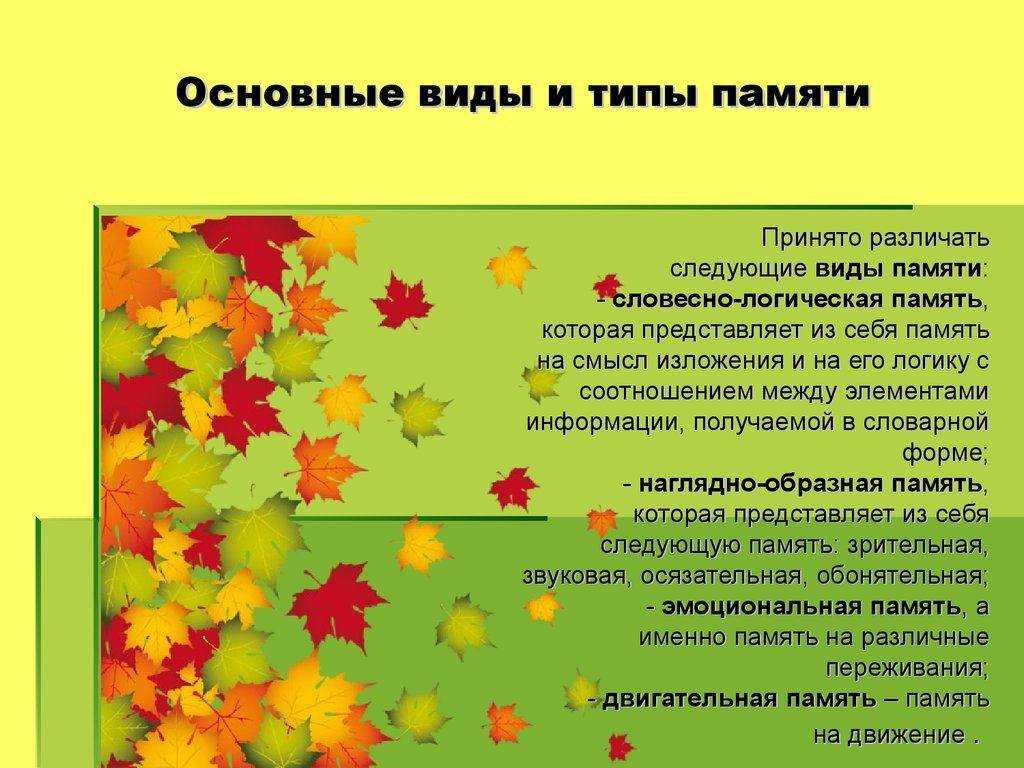 Важно! Каждый из вышеперечисленных видов необходимо развивать отдельно, путем задействования соответствующих органов чувств. По продолжительности детскую память разделяют на 2 типа:. По продолжительности детскую память разделяют на 2 типа: