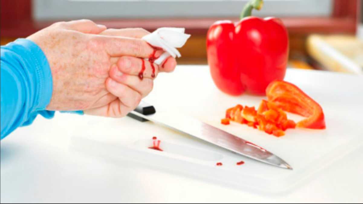 Самые частые травмы на кухне — порез пальцев ножом или другими острыми предметами.