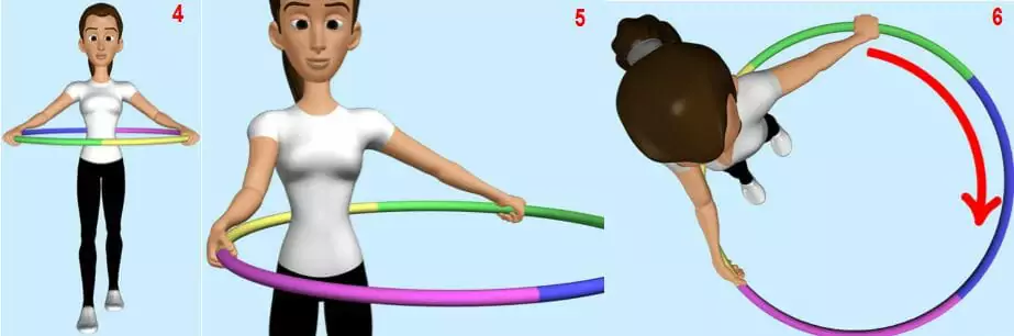 - Первое время проще раскручивать обруч по часовой стрелке. Постепенно направление вращения нужно будет изменять для достижения максимального эффекта.