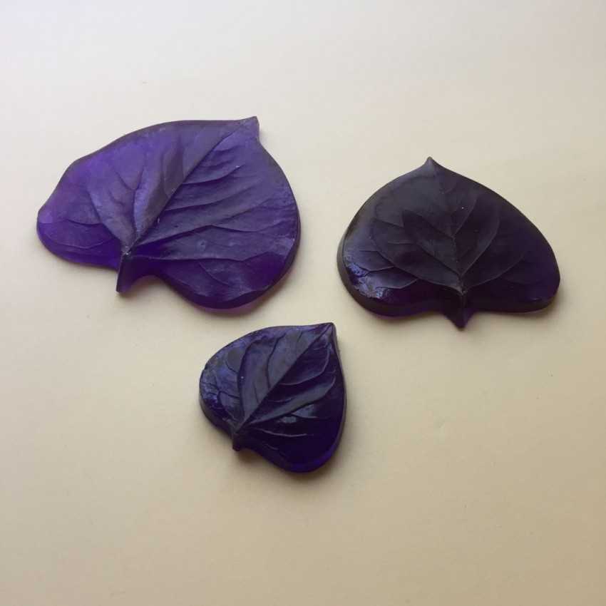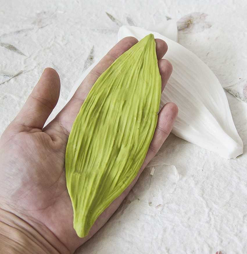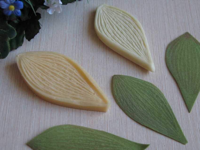 Как пользоваться силиконовыми молдами:Работать с силиконовым молдом тоже проще простого. Если форма для изготовления домашнего мыла — залил, после полного высылания мыла перевернуть.Если для листика или лепестка из мастики или полимерной глины — вырезал листик, приложил, закрыл второй частью формы, открыл — готово! У меня, правда, мастика была не цветочная (специально для лепки цветов из мастики, держит форму), а мастика из сгущенки. Но отпечаток на ней хорошо видно тоже.