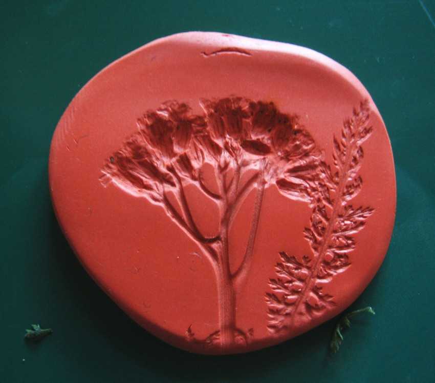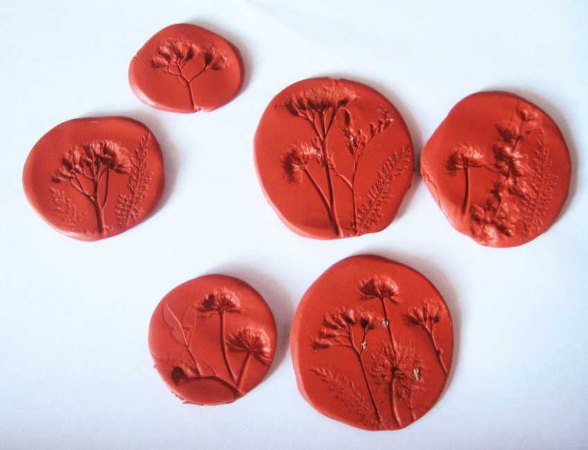 Готовое «тесто» нужно раскатать, но не очень тонко. В раскатанные круги вдавливаются предметы для оттисков и оставляются в таком виде на несколько часов. А лучше на целую ночь
