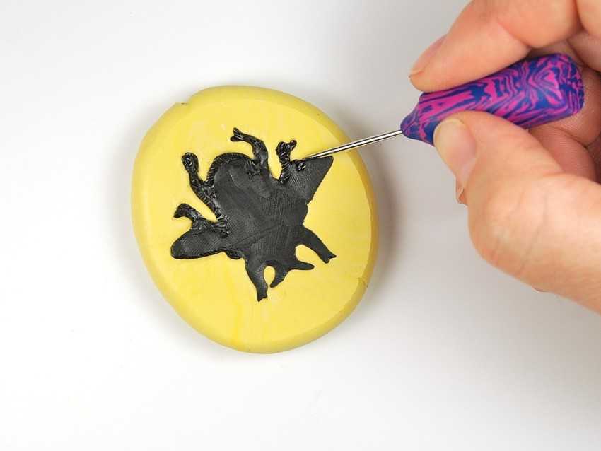 После нанесения рисунка полимерную глину необходимо варить примерно 5 минут или запекать по инструкции, размещенной на ее упаковке, а затем смазать кремом.