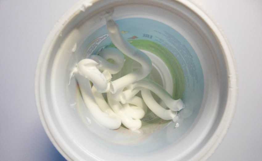 Крахмал помещают в стеклянную емкость. К нему постепенно начинают добавлять строительный силикон. Полученную массу необходимо тщательно вымешать до образования плотного теста. В среднем для этого понадобится от 5 до 15 минут. При контакте друг с другом эти вещества образуют плотную массу, которые необходимо постепенно вымешивать.