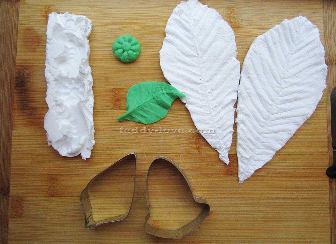 - Свежие листья, лепестки цветов. Они будут служить в качестве трафарета и лекала будущего молда.