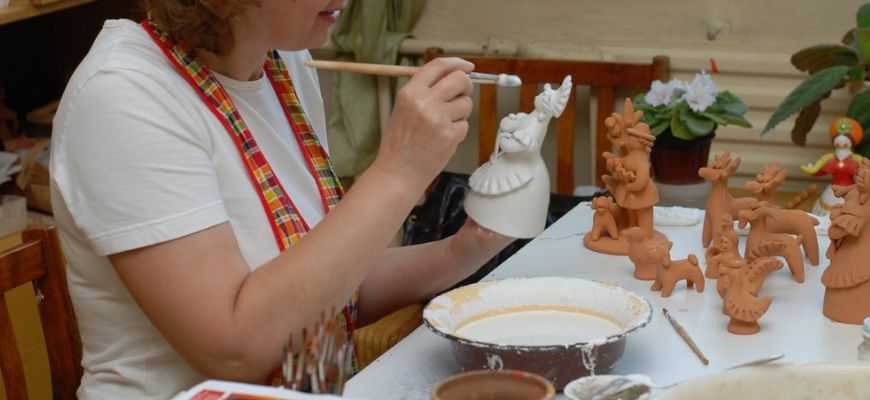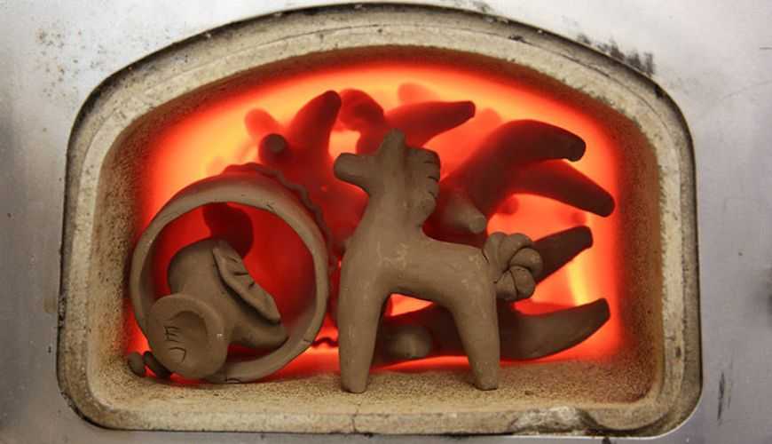 Готовые фигурки высушивают от нескольких дней до 2-3 недель. Срок зависит от размеров поделки и условий в помещении (влажности и температуры). Следующий этап – обжиг, который раньше проводили в печи, устанавливая изделия на железном противне над дровами.