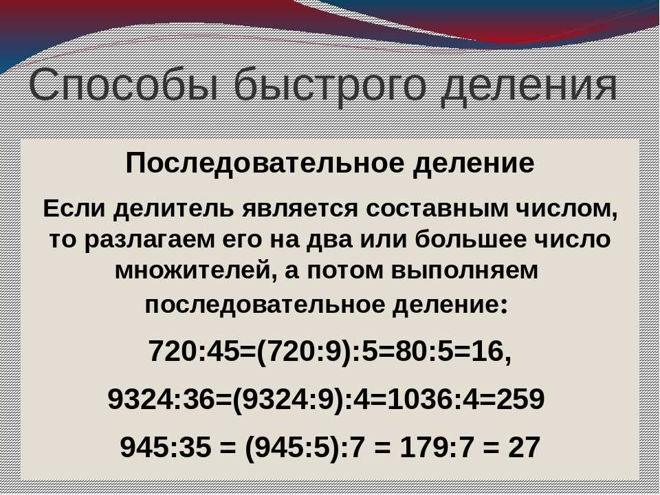 разделить на 6 — это сначала разделить на 2, а потом на 3;