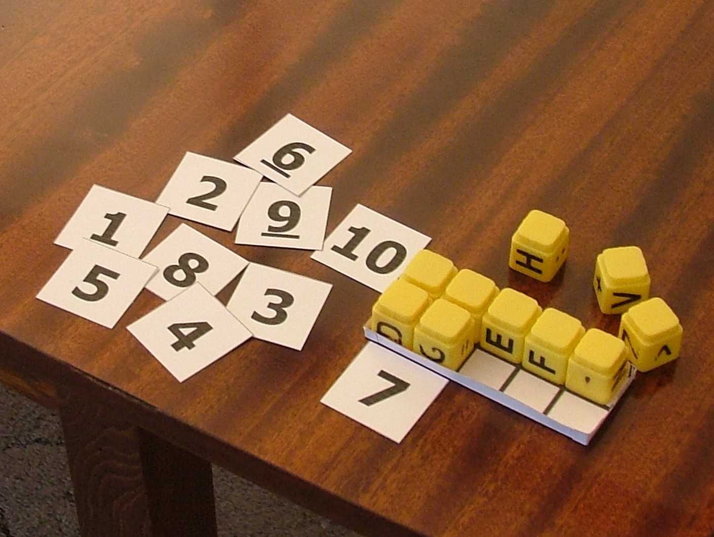 Вначале малыша просят положить в коробку один кубик, назвать число и выбрать соответствующую карточку. Затем при добавлении других элементов ребенок должен менять карточки. После нескольких повторений маленький ученик запоминает конфигурации кубиков. Далее можно переходить к операциям сложения и вычитания, используя игровую форму. При этом счет постепенно увеличивается до 10.