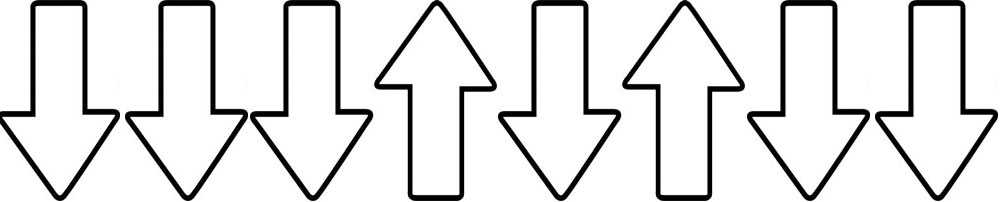 Техника боя – это последовательность ударов вниз регистра и вверх. Отмечаются они стрелочками.