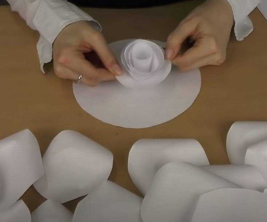 - Сверните получившуюся фигуру по спирали. В результате вы создадите красивую розу.