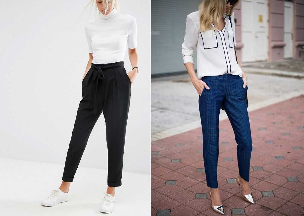 - Классическая длина брюк — до середины каблука, но современная мода предлагает длину до щиколотки. Выбор за вами.
