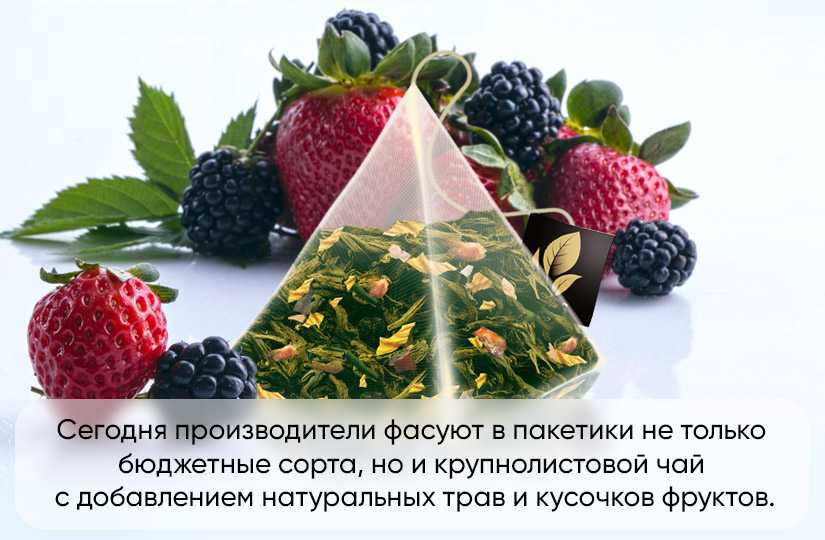 Сегодня же чайный пакетик вряд ли кого-то удивит. В магазинах можно встретить множество форм и видов: двухкамерные с ниткой, плоские без нитки, пирамидки и чайные стики с перфорацией. В пакетики фасуют не только бюджетные сорта (так называемую чайную пыль), но и крупнолистовую заварку с добавлением трав и кусочков фруктов. Современное производство полностью исключило из технологии клей, а сами пакетики изготавливают из безопасного пальмового волокна или нейлона. Поэтому мы можем смело пить пакетированный чай и наслаждаться его настоящим вкусом.